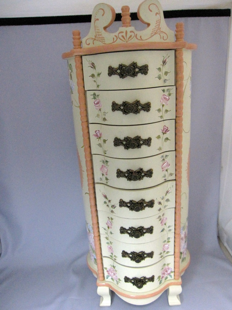 55cmもある古くなったジュエリーボックスを全面リメイク。引き出しの中の生地もピンクに張り替えて。