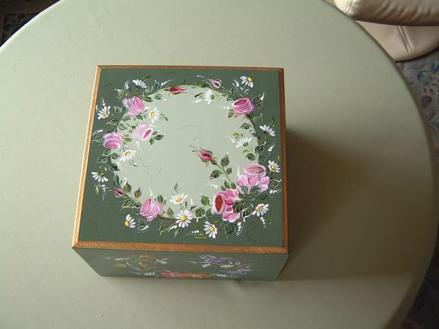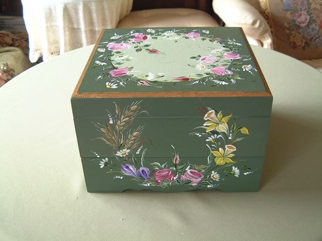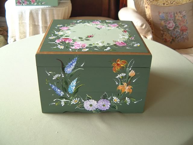 ちなみにアッセンデルフトとは17世紀にオランダで生まれたフォークアートで花や果物,鳥などの代表的なモチーフをすべてひと筆描きの要領でのびのびと描き,その色合いや重厚感などが楽しいペインティングです。木製品の生活小物をはじめ,あらゆる身の廻りのものから家具のリフォームまで多種多様です。
