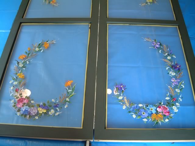 ちなみにアッセンデルフトとは17世紀にオランダで生まれたフォークアートで花や果物,鳥などの代表的なモチーフをすべてひと筆描きの要領でのびのびと描き,その色合いや重厚感などが楽しいペインティングです。木製品の生活小物をはじめ,あらゆる身の廻りのものから家具のリフォームまで多種多様です。