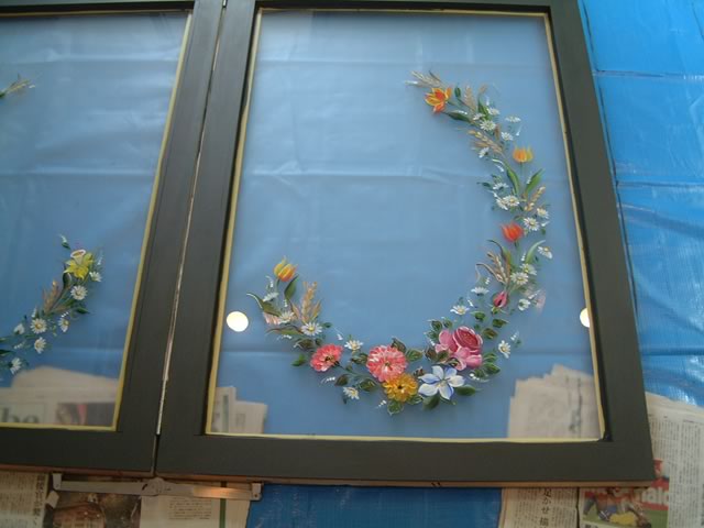 縦が2m以上もあり,四面の枠の下地塗りだけで6時間もかかる大仕事でした。