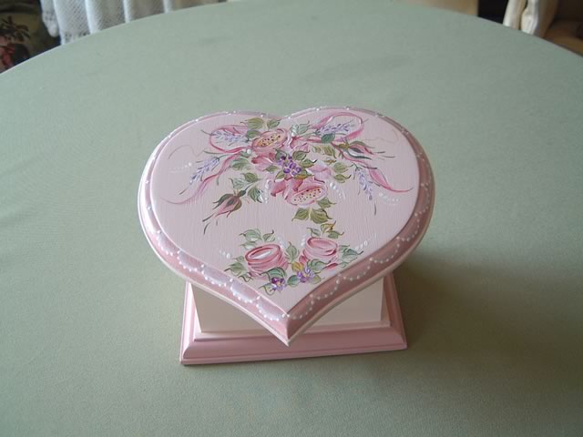 ハート型のポプリケースは地色もお花もリボンも全部ピンクでまとめて…。