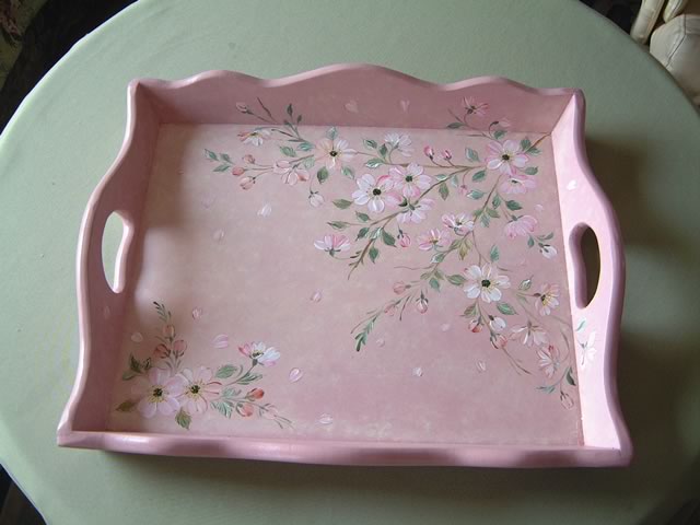 桜の時期に描いた大型のトレーは桜の花一色です。