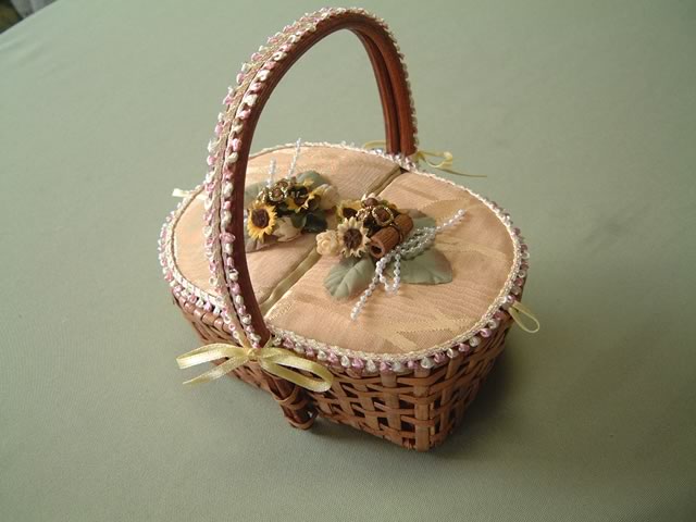 手の平サイズのメッシュバスケットは,同色のフタにヒマワリをイメージしたアレンジメントを…。