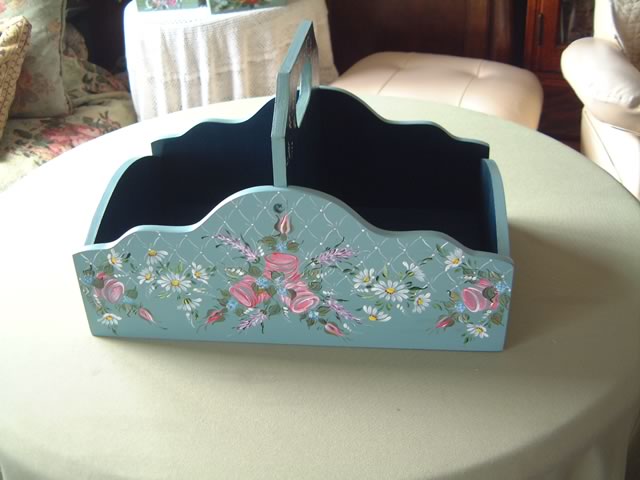 ちなみにアッセンデルフトとは17世紀にオランダで生まれたフォークアートで花や果物,鳥などの代表的なモチーフをすべてひと筆描きの要領でのびのびと描き,その色合いや重厚感などが楽しいペインティングです。木製品の生活小物をはじめ,あらゆる身の廻りのものから家具のリフォームまで多種多様です。