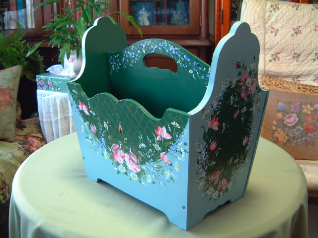 ちなみにアッセンデルフトとは17世紀にオランダで生まれたフォークアートで花や果物,鳥などの代表的なモチーフをすべてひと筆描きの要領でのびのびと描き,その色合いや重厚感などが楽しいペインティングです。木製品の生活小物をはじめ,あらゆる身の廻りのものから家具のリフォームまで多種多様です。