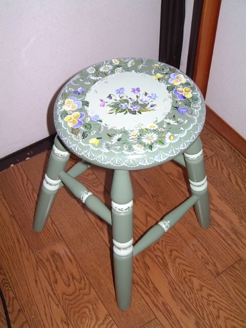 ちなみにアッセンデルフトとは17世紀にオランダで生まれたフォークアートで花や果物,鳥などの代表的なモチーフをすべてひと筆描きの要領でのびのびと描き,その色合いや重厚感などが楽しいペインティングです。木製品の生活小物をはじめ,あらゆる身の廻りのものから家具のリフォームまで多種多様です。