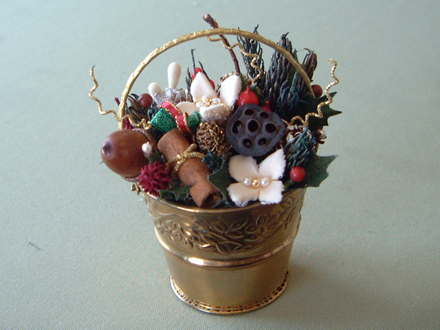 また,スパイスアレンジメントの方は,オーストリアのザルツブルグ地方などに昔から伝わるアレンジメントでビーダーマイヤーともいわれ,花や木の実,スパイスなどにワイヤーやリボン,パールなどを細工し組み合せてつくるもので,ブーケやリース,キャンドルコンポートなどさまざまにお部屋を美しく飾ります。