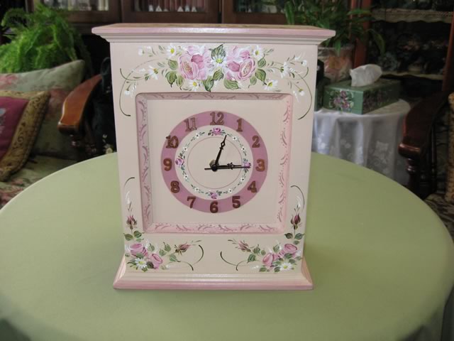 ピンクの濃淡とバラだけでまとめたエレガントな置き時計。
