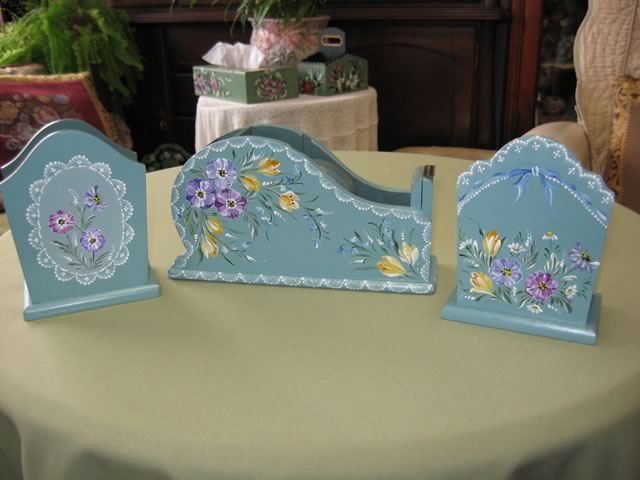 ちなみにアッセンデルフトとは17世紀にオランダで生まれたフォークアートで花や果物,鳥などの代表的なモチーフをすべてひと筆描きの要領でのびのびと描き,その色合いや重厚感などが楽しいペインティングです。木製品の生活小物をはじめ,あらゆる身の廻りのものから家具のリフォームまで多種多様です。
