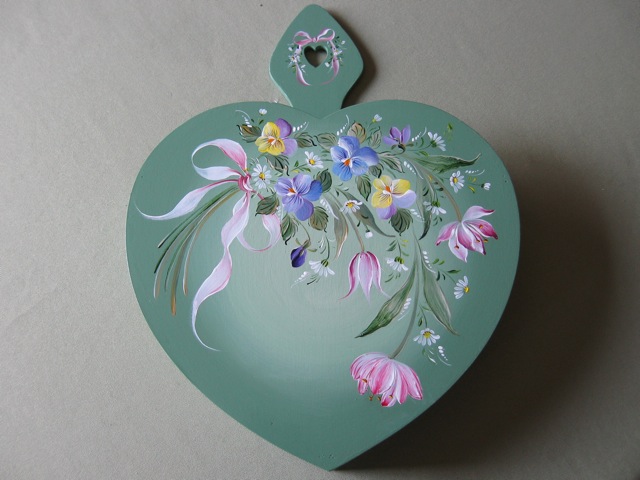 ちなみにアッセンデルフトとは17世紀にオランダで生まれたフォークアートで花や果物,鳥などの代表的なモチーフをすべてひと筆描きの要領でのびのびと描き,その色合いや重厚感などが楽しいペインティングです。木製品の生活小物をはじめ,あらゆる身の廻りのものから家具のリフォームまで多種多様です。
