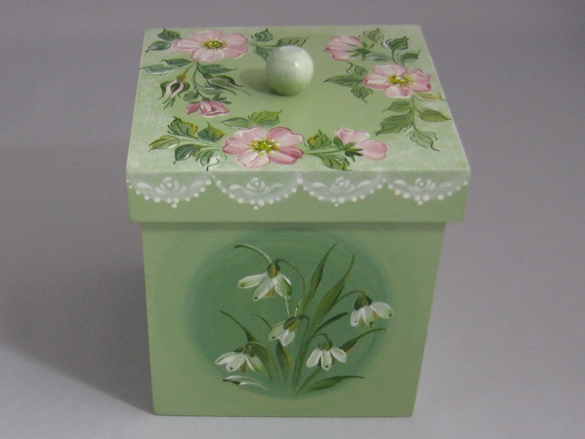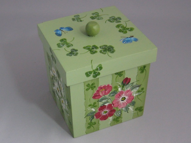 ちなみにアッセンデルフトとは17世紀にオランダで生まれたフォークアートで花や果物,鳥などの代表的なモチーフをすべてひと筆描きの要領でのびのびと描き,その色合いや重厚感などが楽しいペインティングです。木製品の生活小物をはじめ,あらゆる身の廻りのものから家具のリフォームまで多種多様です。