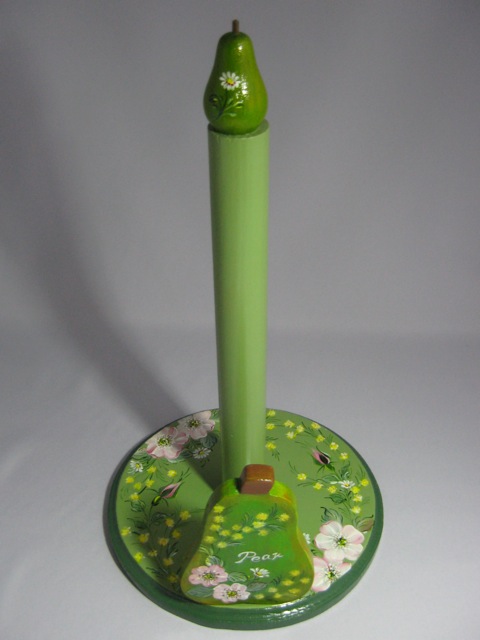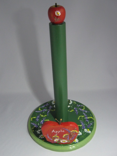 リンゴと洋ナシをポイントにしたペーパースタンドは,キッチンの楽しいアクセントに。