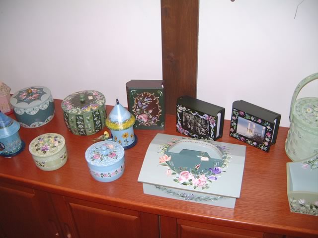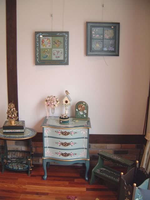 ちなみにアッセンデルフトとは17世紀にオランダで生まれたフォークアートで花や果物,鳥などの代表的なモチーフをすべてひと筆描きの要領でのびのびと描き,その色合いや重厚感などが楽しいペインティングです。木製品の生活小物をはじめ,あらゆる身の廻りのものから家具のリフォームまで多種多様です。