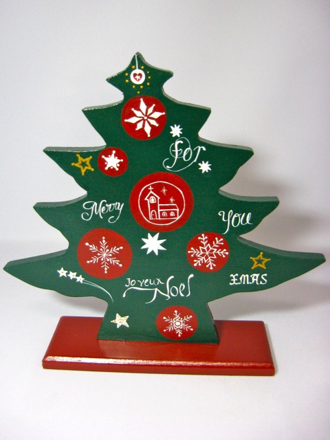 高さ19cmの小さなツリーは両面ともシンプルなデザインで。