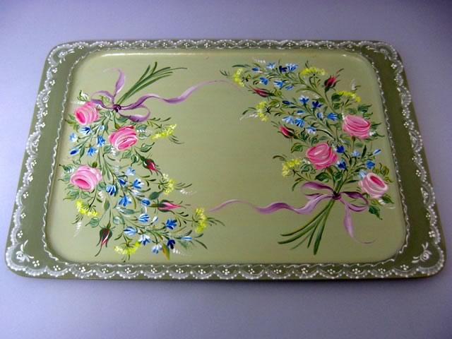 ちなみにアッセンデルフトとは17世紀にオランダで生まれたフォークアートで花や果物,鳥などの代表的なモチーフをすべてひと筆描きの要領でのびのびと描き,その色合いや重厚感などが楽しいペインティングです。木製品の生活小物をはじめ,あらゆる身の廻りのものから家具のリフォームまで多種多様です。