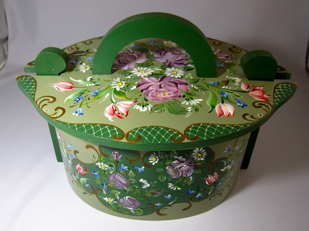 ちなみにアッセンデルフトとは17世紀にオランダで生まれたフォークアートで花や果物,鳥などの代表的なモチーフをすべてひと筆描きの要領でのびのびと描き,その色合いや重厚感などが楽しいペインティングです。木製品の生活小物をはじめ,あらゆる身の廻りのものから家具のリフォームまで多種多様です。