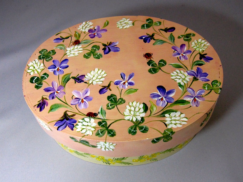 ちなみにアッセンデルフトとは17世紀にオランダで生まれたフォークアートで花や果物,鳥などの代表的なモチーフをすべてひと筆描きの要領でのびのびと描き,その色合いや重厚感などが楽しいペインティングです。木製品の生活小物をはじめ,あらゆる身の廻りのものから家具のリフォームまで多種多様です。