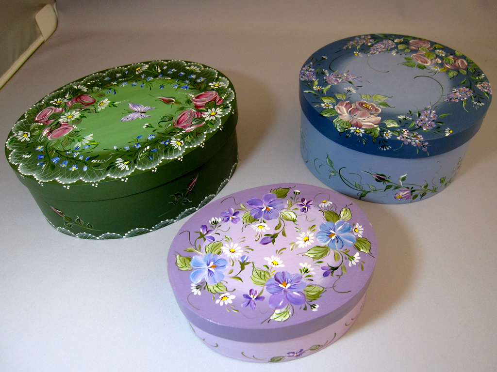 ちなみにアッセンデルフトとは17世紀にオランダで生まれたフォークアートで花や果物,鳥などの代表的なモチーフをすべてひと筆描きの要領でのびのびと描き,その色合いや重厚感などが楽しいペインティングです。木製品の生活小物をはじめ,あらゆる身の廻りのものから家具のリフォームまで多種多様です。