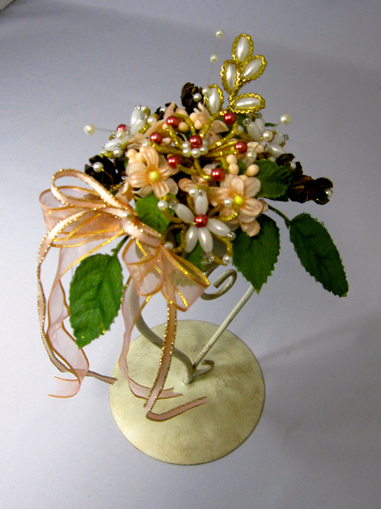 パールとブリヨンの細工で小ぶりでありながらも華やかさあふれるテーブル飾りです。