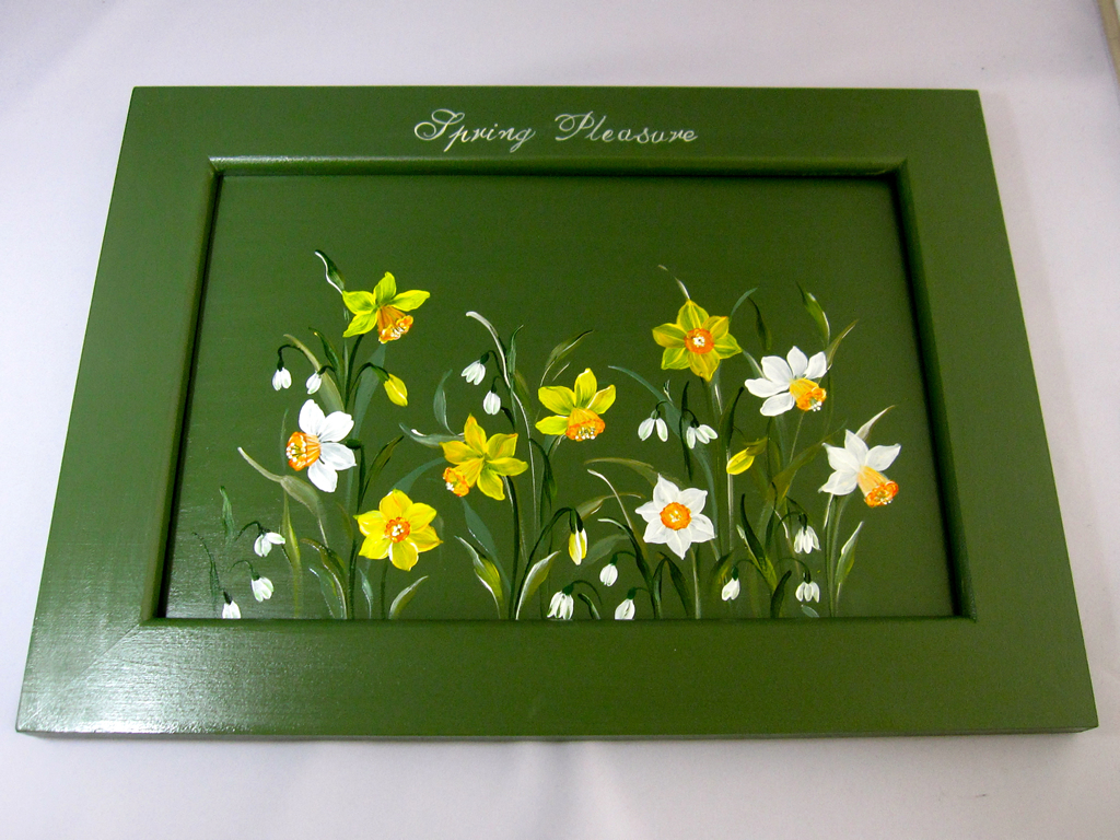 ちなみにアッセンデルフトとは17世紀にオランダで生まれたフォークアートで花や果物,鳥などの代表的なモチーフをすべてひと筆描きの要領でのびのびと描き,その色合いや重厚感などが楽しいペインティングです。木製品の生活小物をはじめ,あらゆる身の廻りのものから家具のリフォームまで多種多様です。