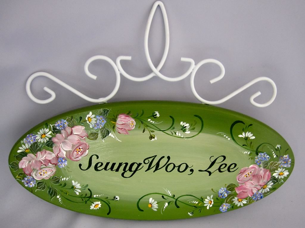 韓国の方に描いたネームプレートは,文字を際立たせて。