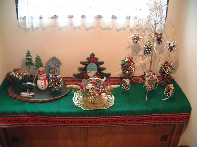 また,スパイスアレンジメントの方は,オーストリアのザルツブルグ地方などに昔から伝わるアレンジメントでビーダーマイヤーともいわれ,花や木の実,スパイスなどにワイヤーやリボン,パールなどを細工し組み合せてつくるもので,ブーケやリース,キャンドルコンポートなどさまざまにお部屋を美しく飾ります。