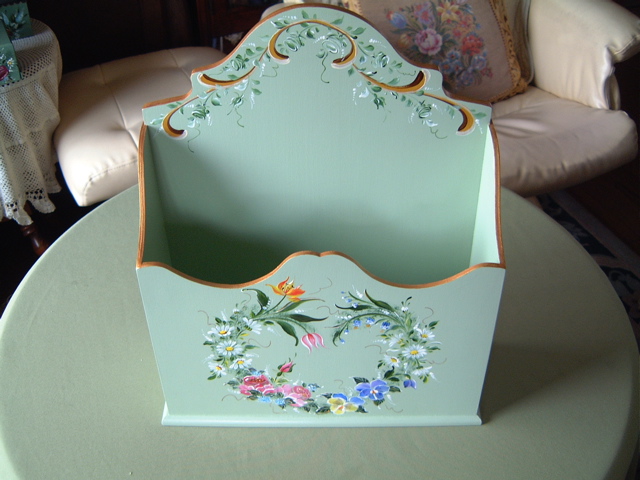 ちなみにアッセンデルフトとは17世紀にオランダで生まれたフォークアートで花や果物,鳥などの代表的なモチーフをすべてひと筆描きの要領でのびのびと描き,その色合いや重厚感などが楽しいペインティングです。木製品の生活小物をはじめ,あらゆる身の廻りのものから家具のリフォームまで多種多様です。