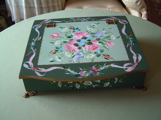 ちなみにアッセンデルフトとは17世紀にオランダで生まれたフォークアートで花や果物,鳥などの代表的なモチーフをすべてひと筆描きの要領でのびのびと描き,その色合いや重厚感などが楽しいペインティングです。木製品の生活小物をはじめ,あらゆる身の廻りのものから家具のリフォームまで多種多様です。