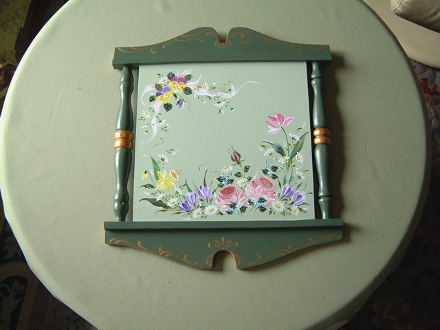 ちなみにアッセンデルフトとは17世紀にオランダで生まれたフォークアートで花や果物,鳥などの代表的なモチーフをすべてひと筆描きの要領でのびのびと描き,その色合いや重厚感などが楽しいペインティングです。木製品の生活小物をはじめ,あらゆる身の廻りのものから家具のリフォームまで多種多様です。